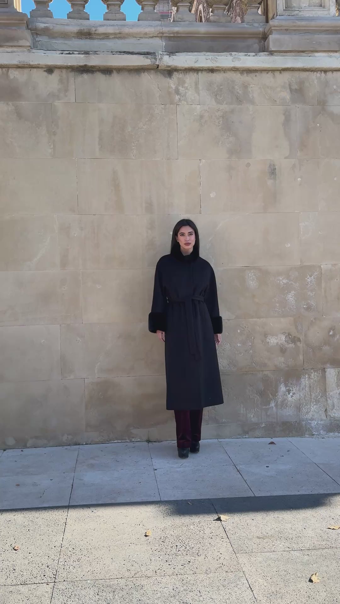 ABRIGO CASHMERE NEGRO CUELLO Y MANGAS VISÓN
